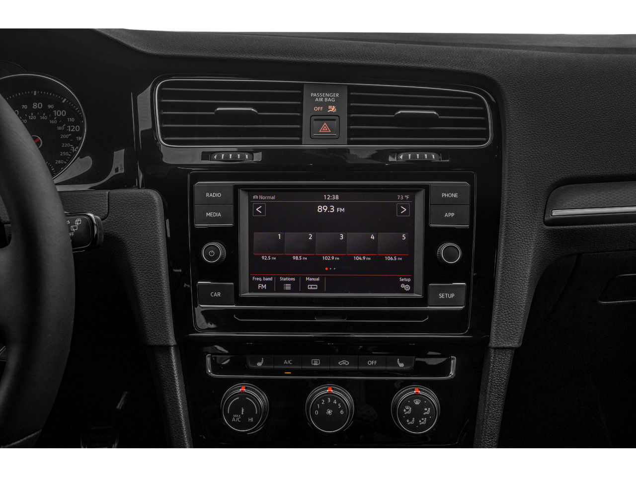 Step inside and discover the epitome of German engineering. The Golf GTI's spacious and well-appointed interior offers an array of creature comforts, from the 6-speaker audio system to the power driver's seat and steering wheel-mounted audio controls. Dual-zone climate control and a rear window defroster ensure year-round comfort, while the 60/40 split-folding rear seats provide versatile cargo-carrying capabilities.
