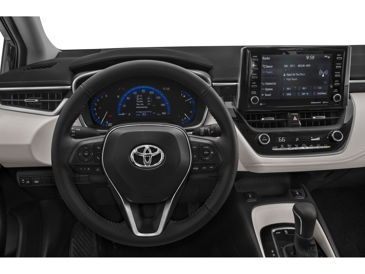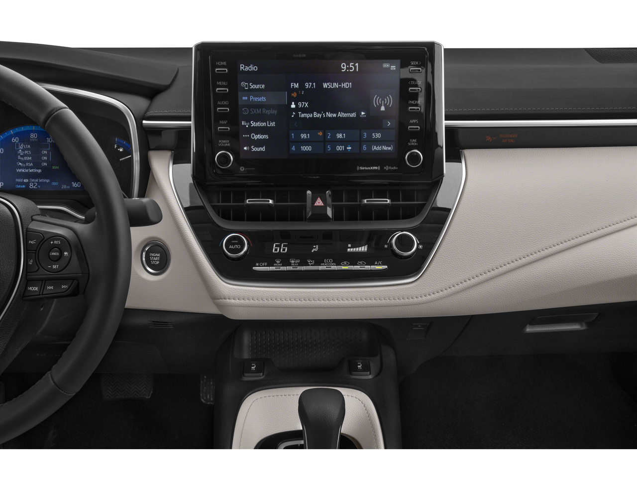 Slip into the comfortable SofTex-trimmed seats and enjoy the convenience of a power driver's seat, dual-zone automatic climate control, and a premium audio system with Apple CarPlay and Android Auto integration. The Corolla XLE also offers a host of advanced safety technologies, including a Blind Spot Monitor, Rear Cross-Traffic Alert, and Toyota Safety Sense 2.0, providing you with peace of mind on every journey.